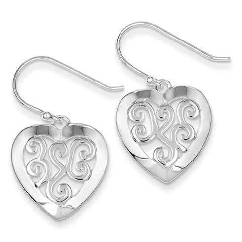 Sterling Silver Etched-design Heart Earrings. Weight:3.9 grams. Measures 1 1/8 inches tall.