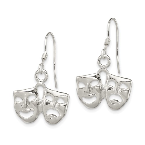 Sterling silver comedy and tragedy Earrings have French wire backs. Weight: 2.4 grams. Measures 1 inch tall.