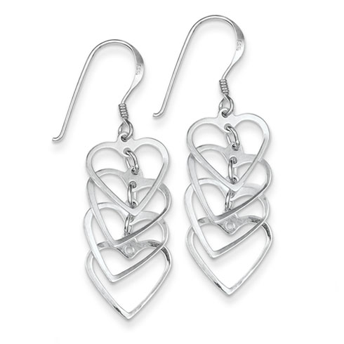 Heart stack dangle earrings are made of polished sterling silver. Measures 1 3/4 inches tall. Weight: 2.75 grams.
