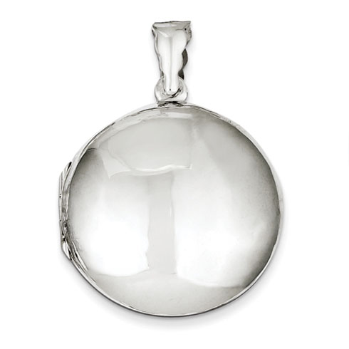 Polished round domed Locket is made of sterling silver. Measures 1 1 1/8 inches tall by 1 1/8 inches wide without bail. Weight: 8.35 grams.