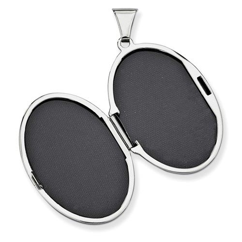 Floral oval locket is made of sterling silver. Measures 1 1/4 inches tall by 7/8 inches wide without bail. Weight: 4 grams. Not engravable. The back is blank and high polished. Made in Thailand.