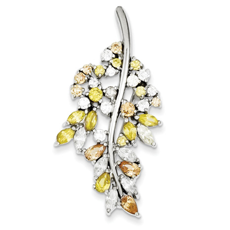 Multi-color cubic zirconia leaf pin is made of sterling silver. Measures 7/8 inches tall by 1 3/4 inches wide without bail. Import.
