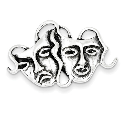 Sterling Silver Antiqued Comedy/tragedy Pin. Weight:4.55 grams. Measures 3/4 inches tall by 1 3/8 inches wide without bail.