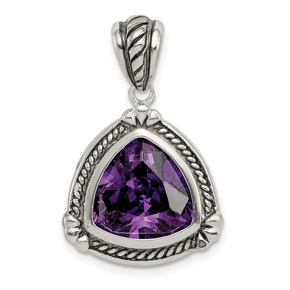 Sterling Silver Purple CZ Pendant. Weight:0 grams. Measures 1 1/8 inches tall by 5/8 inches wide. Fits up to 4mm chain.