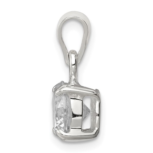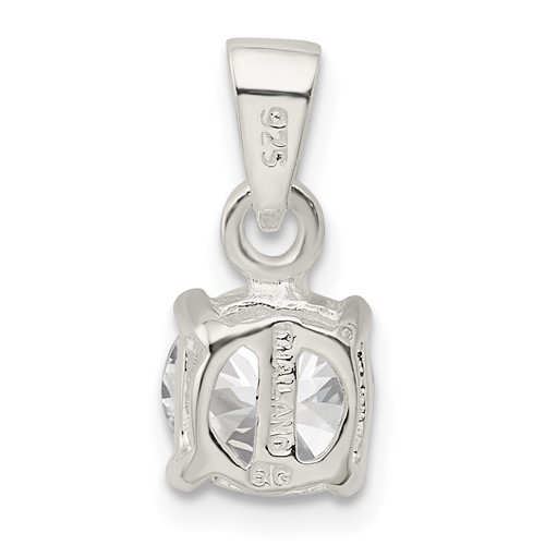 8mm round cubic zirconia solitaire pendant is made of sterling silver. Measures 5/8 inches tall by 5/16 inches wide. Weight:0.87 grams.