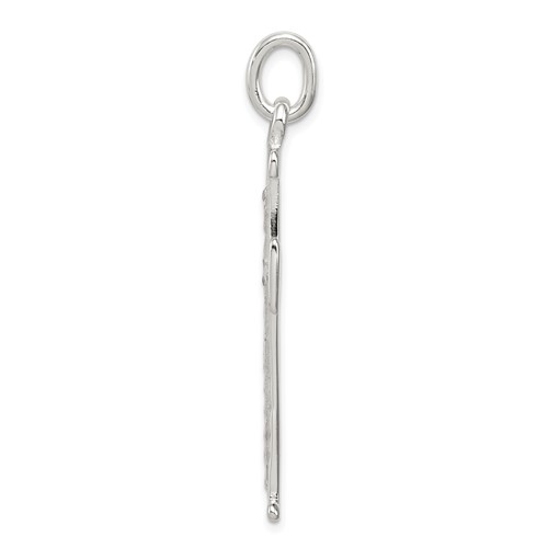 This large solid sterling silver filigree cross pendant has a textured and polished finish. Weight: 5.4 grams. Measures 1 3/4 inches tall by 7/8 inches wide. Made in India. Ships from USA.