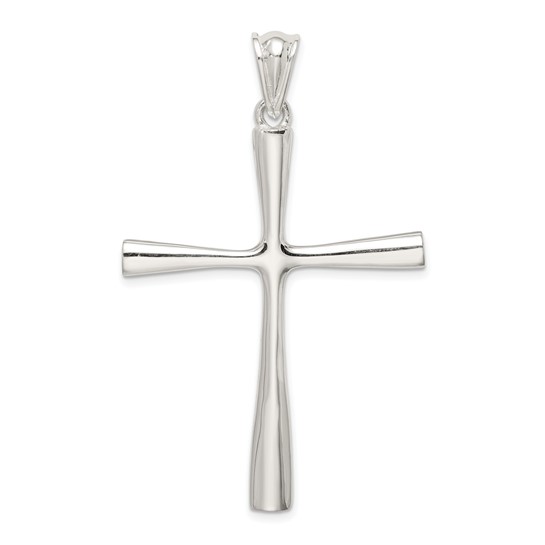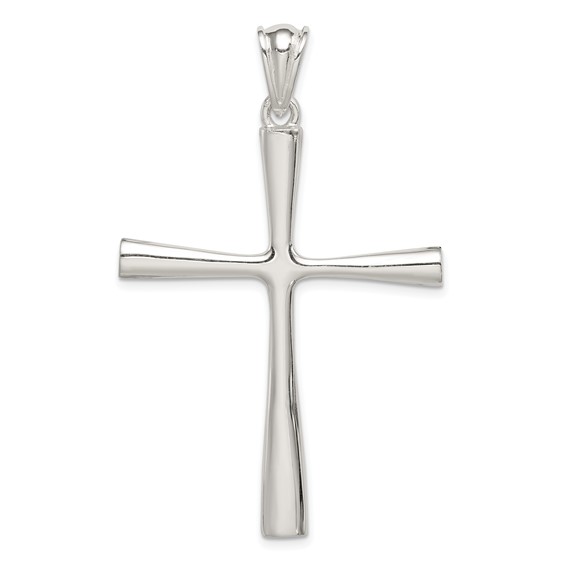 This jumbo tapered cross pendant is made of sterling silver. Weight: 7.19 grams. Measures 2 1/4 inches tall by 1 3/8 inches wide without bail. Chain not included.
