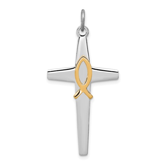 Sterling Silver & Vermeil Cross Charm. Weight: 2.2 grams. Measures 1 1/2 inches tall by 13/16 inches wide.
