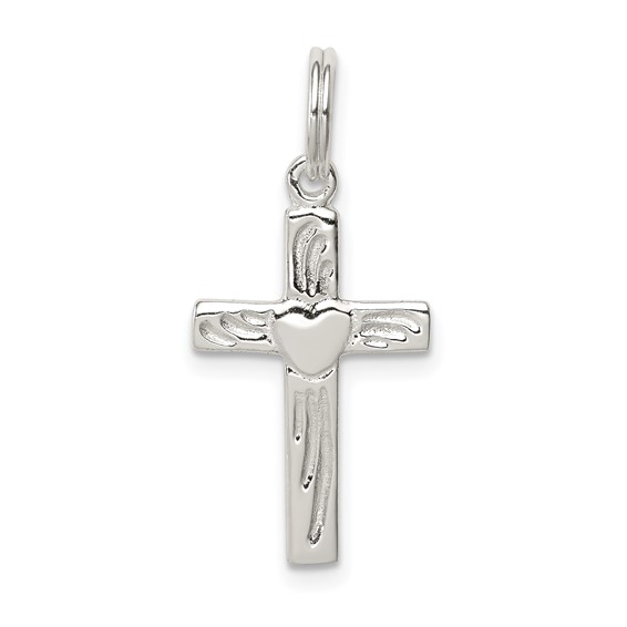 Diamond-cut sterling silver cross. Weight: 0.87 grams. Measures 3/4 inches tall by 1/2 inch wide without bail. This item is the size of a penny. Made in the USA.