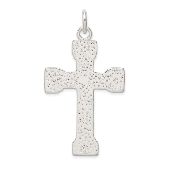 This large crucifix pendant is made of solid sterling silver. Item size: 1 13/16in by 1 3/16in without bail. Fits up to a 3.5mm wide chain. Approximate weight: 7.0 grams. Made in India. Ships from USA.