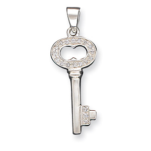 Sterling Silver CZ Key Pendant. Weight:3.92 grams. Item measures 1 3/8 inches tall by 5/8 inch wide.