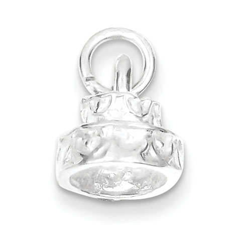Birthday cake charm is made of polished sterling silver. Item measures 5/16 inches tall by 7/16 inch wide. Weight:2.7 grams.
