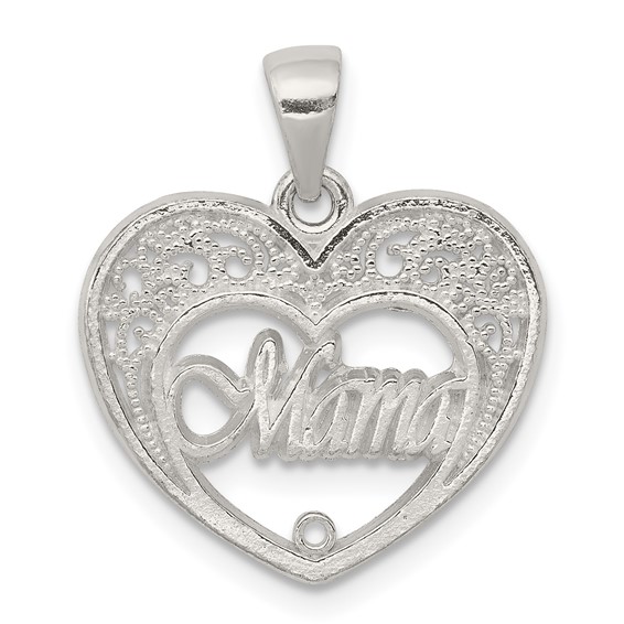 Mama heart charm is made of sterling silver. Weight:1 grams. Item measures 5/8 inch by 11/16 inch without bail.