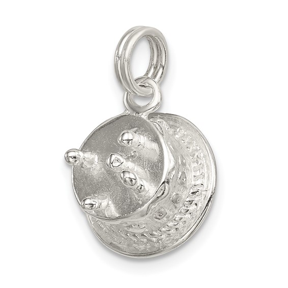 This small cake charm is made of polished sterling silver. Item measures 3/8 inch by 1/2 inch without bail. Weight: 3.25 grams.