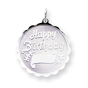 Sterling Silver Happy Birthday Disc Charm. Weight:2 grams. Item measures 7/8 inch by 7/8 inch without bail.