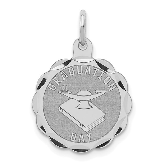 Sterling Silver Graduation Day Disc Charm. Weight:0.87 grams. Item measures 5/8 inch by 5/8 inch without bail.