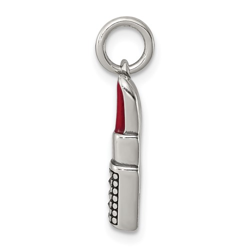 Sterling silver enameled lipstick charm. Weight: 1.1 grams. Item measures 5/8 inch tall by 1/8 inch wide without bail.