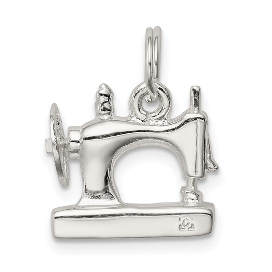 This three dimensional sewing machine charm is made of solid sterling silver. Item measures 1/2 inch tall by 9/16 inch wide without jump ring. Fits up to a 2mm wide chain. Weight: 4.6 grams.