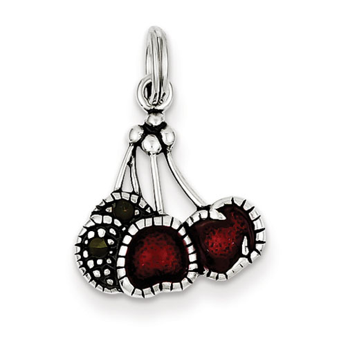 Sterling Silver Enameled Red Cherry Charm. Weight:1.2 grams. Item measures 9/16 inch tall by 1/2 inch wide without bail.