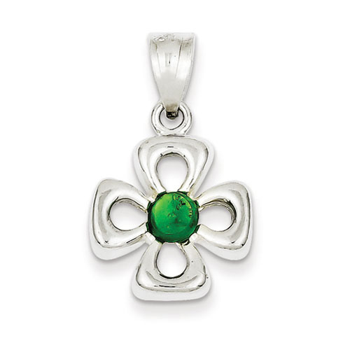 Sterling Silver Green Synthetic Stone Charm. Weight:4.09 grams. Item measures 5/8 inch tall by 5/8 inch wide without bail.