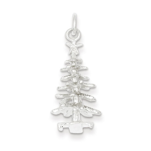 Three dimensional Christmas tree charm is made of polished sterling silver. Item size: 3/4 inches tall by 1/2 inch wide without bail. Weight: 2 grams. Import.