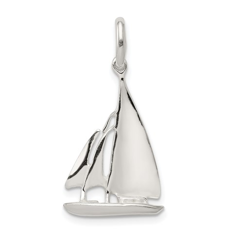 Sailboat charm is made of polished sterling silver. Item size: 13/16 inch tall by 5/8 inch wide without bail. Weight:2 grams.
