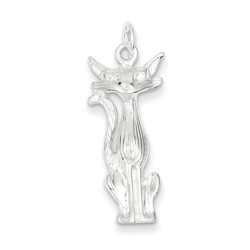 Slender cat charm is made of polished sterling silver. Weight: 1.87 grams. Item measures 1 1/16 inch tall by 1/2 inch wide without bail.