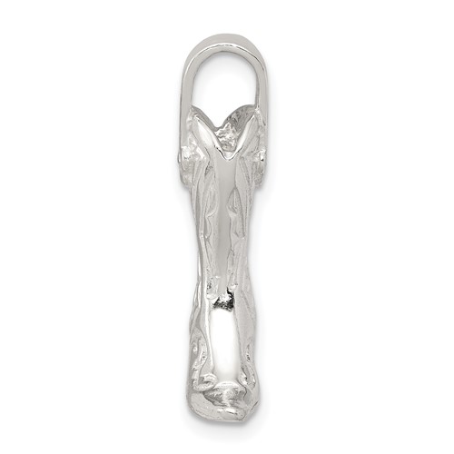 Cowboy boot charm is made of polished sterling silver. Weight: 3.9 grams. Item measures 1in tall by 1/2in wide including bail. Made in USA.