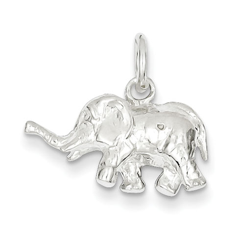 Three dimensional walking elephant charm is made of polished sterling silver. Item measures 7/16 inch tall by 3/4 inch wide without bail. Weight: 3.9 grams. Made in the USA.