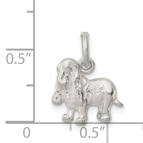 Sterling Silver Hound Dog Charm. Weight: 0.6 grams. Measures 7/16 inch tall by 1/2 inch wide without bail.