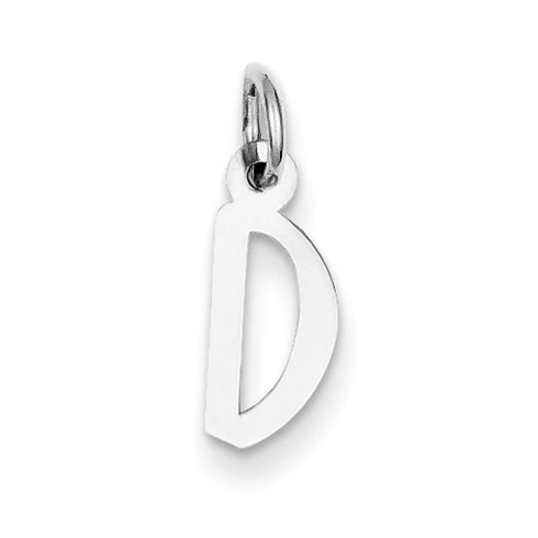 Sterling Silver Small Slanted Block Initial D Charm. Weight:0.23 grams. Measures 3/8 inch tall without bail.