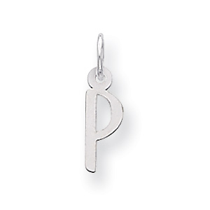 Sterling Silver Small Slanted Block Initial P Charm. Weight:0.23 grams. Measures 3/8 inch tall without bail.