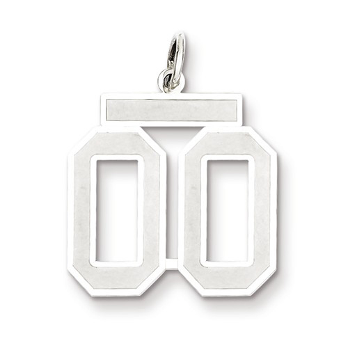Medium number 00 charm is made of sterling silver with satin finish. Number measures 5/8 inch tall without bail. Weight: 0.93 grams. Made in the USA.