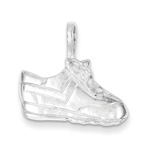 Tennis shoe charm is made of polished sterling silver. Item measures 1/2 inch tall by 13/16 inch wide without bail. Weight:2 grams.
