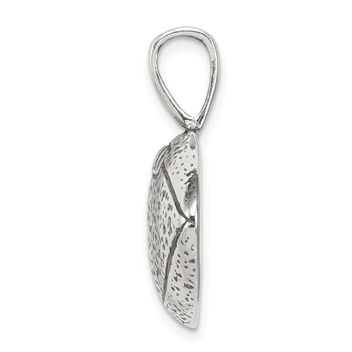 Sterling silver football pndant has an antiqued and textured finish. Item measures 11/16 inch tall by 1 1/8 inch wide without bail. Weight: 5.4 grams.