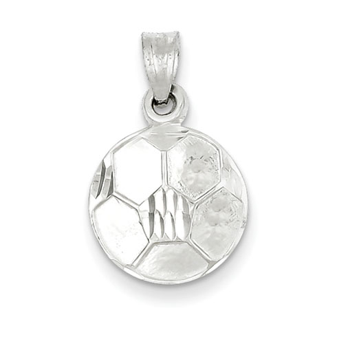Sterling silver soccer ball charm has a polished and satin finish. Item measures 9/16 inch tall by 9/16 inch wide without bail. Weight: 1.1 grams.