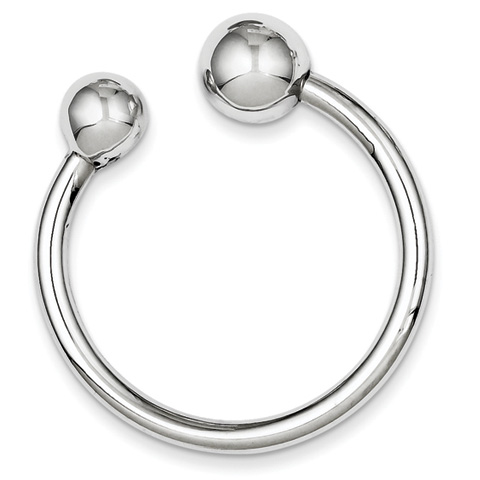 This polished sterling silver key ring has two balls. Item size: 1 1/2in x 1 1/2in. Weight: 9.3 grams. Made in Italy.