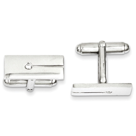 Sterling silver rectangular cuff links have cubic zirconia accents. Item measures 7/8 inches tall by 5/16 inch wide. Weight: 9.7 grams. Made in Italy. Ships from USA. Available while supplies last.