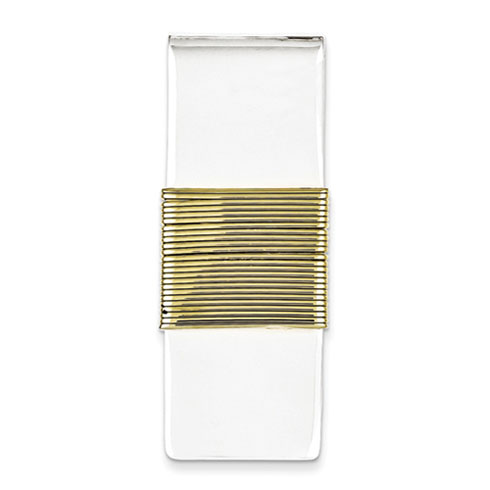 Sterling silver money clip has a vermeil band. Measures 1 15/16 inches tall by 13/16 inches wide. Weight: 17.37 grams.