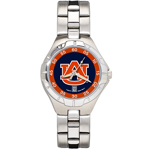The ladies' Auburn University Pro II watch features an orange and blue logo prominently centered on the colorful dial with coordinating dial ring. Powered by a precision Miyota three hand quartz movement with date function. Packaged in an attractive tin with flocked insert. Water resistant. Two year limited warranty.