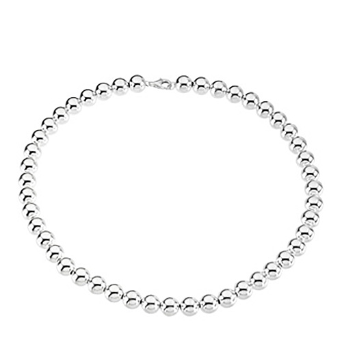 This polished sterling silver bead necklace has a fancy lobster clasp. Necklace length: 16in, width: 10mm. Weight: 35.53 grams.
