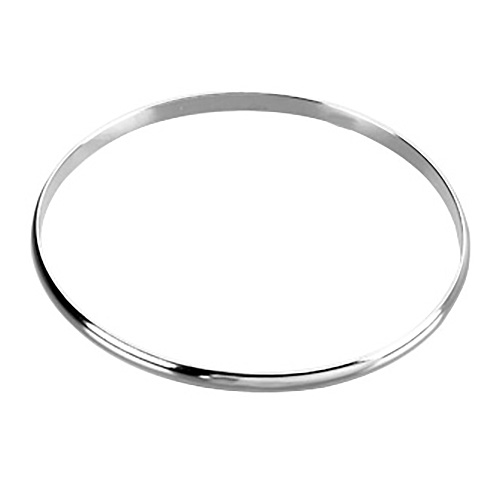 Smooth bangle bracelet is made of polished sterling silver. Item measures 4mm wide. Fits 8in wrists. Weight: 10.50 grams.