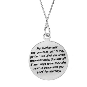 Measures 20.00 by 20.00 mm. Includes matching 18in white gold chain. Weight: 3.95 DWT. Through faith and compassion Susan Howard has poured out her heart and created Comfort Wear Jewelry. Among the collection you will find a wide selection of memorial jewelry designed to help bring comfort to grieving loved ones. Etched on the back you will find beautiful prayers specific to each piece inspired by faith.