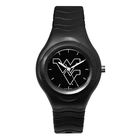The West Virginia University men's shadow watch is a hit with sports fans of all ages. Watch case is 1 5/8 inches wide. The watch dial diameter is one inch. The watch case is made of black ABS plastic resin with a stainless steel screw back. Black polyurethane rubber strap with stainless steel buckle. Acrylic crystal face. Miyota quartz movement (377 battery). Hanging flat blister packaging. Limited lifetime warranty. Team logo is shown boldly in the center of the watch. Water resistant.