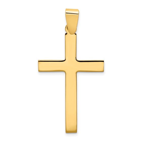 This 14k yellow gold men's cross pendant has a bright polished finish. Approximate weight: 1.8 grams. Item measures 7/8 inch wide by 1 1/2 inches tall without bail. Fits up to a 3.5mm wide chain. Made in Peru. Ships from USA.
