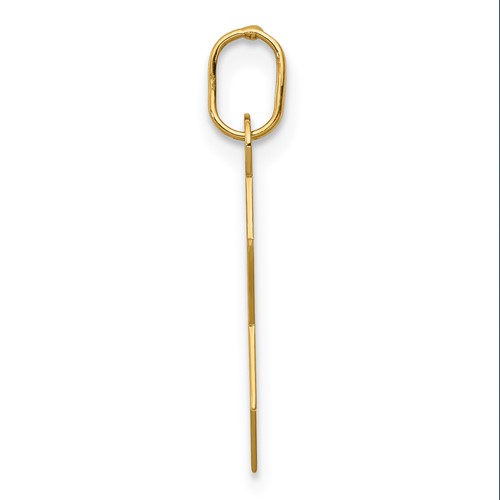 Star of David charm is made of polished 14kt yellow gold. Item measures 1/2 inch wide by 9/16 inch tall without loop and bail. This item is half the size of a quarter. Fits up to a 2.5mm wide chain. Weighs: 0.28 grams. Made in Italy. Ships from USA.