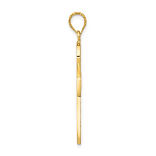 14k yellow gold ankh cross pendant has a distinctive cut-out design. Item measures 11/16 inch wide by 1 1/8 inches tall without loop and bail. Fits up to 3.5mm wide chain. Adopted by Christians to recall Christ as the tree of life, the Ankh or Egyptian cross was taken from the Egyptian hieroglyphics image meaning life. Weight: 2.6 grams. Textured back. Made in USA.