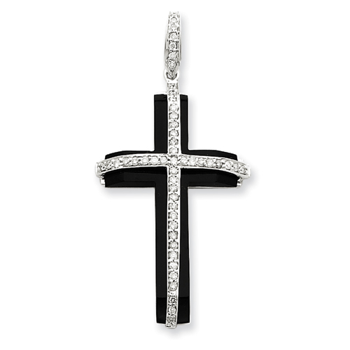 Comments about Joy Jewelers 14k White Gold 1/4 ct tw Diamond & Onyx Cross Pendant 1 1/4in: