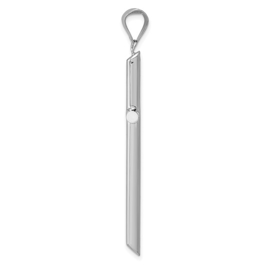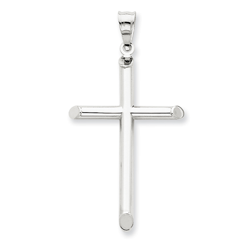 This men's 14k white gold hollow cross pendant has a polished finish. Item measures 15/16 inch wide by 1 1/4 inch tall without loop and bail. Fits up to a 3mm wide chain. Weight: 1.26 grams. Made in Mexico. Ships from USA.