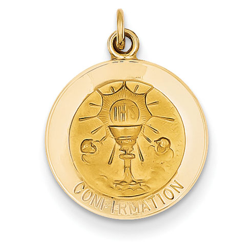14kt Confirmation Medal Charm. Item measures 9/16 inch round without loop and bail. Confirmation reaffirms Babtismal vows to accept full membership into the Church.